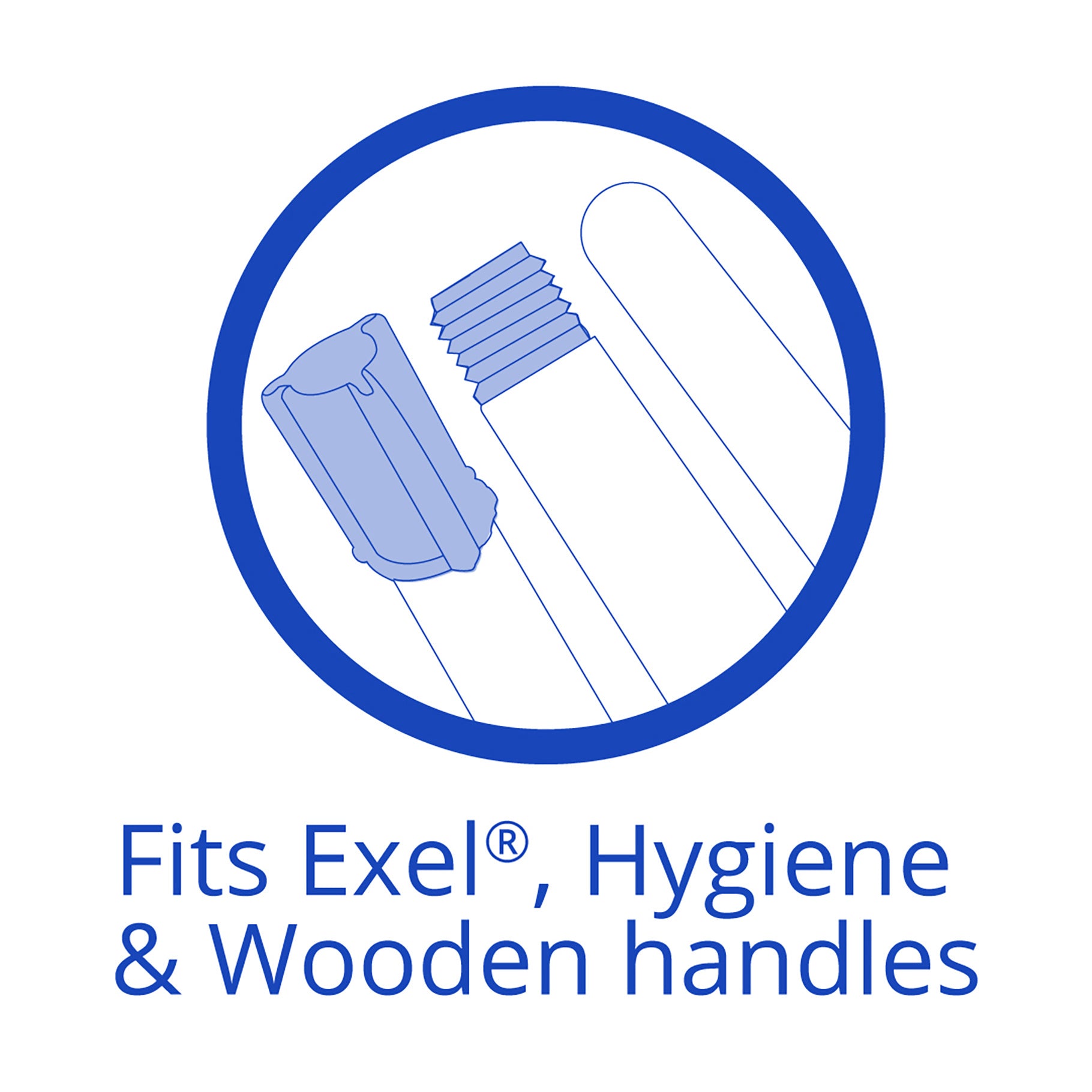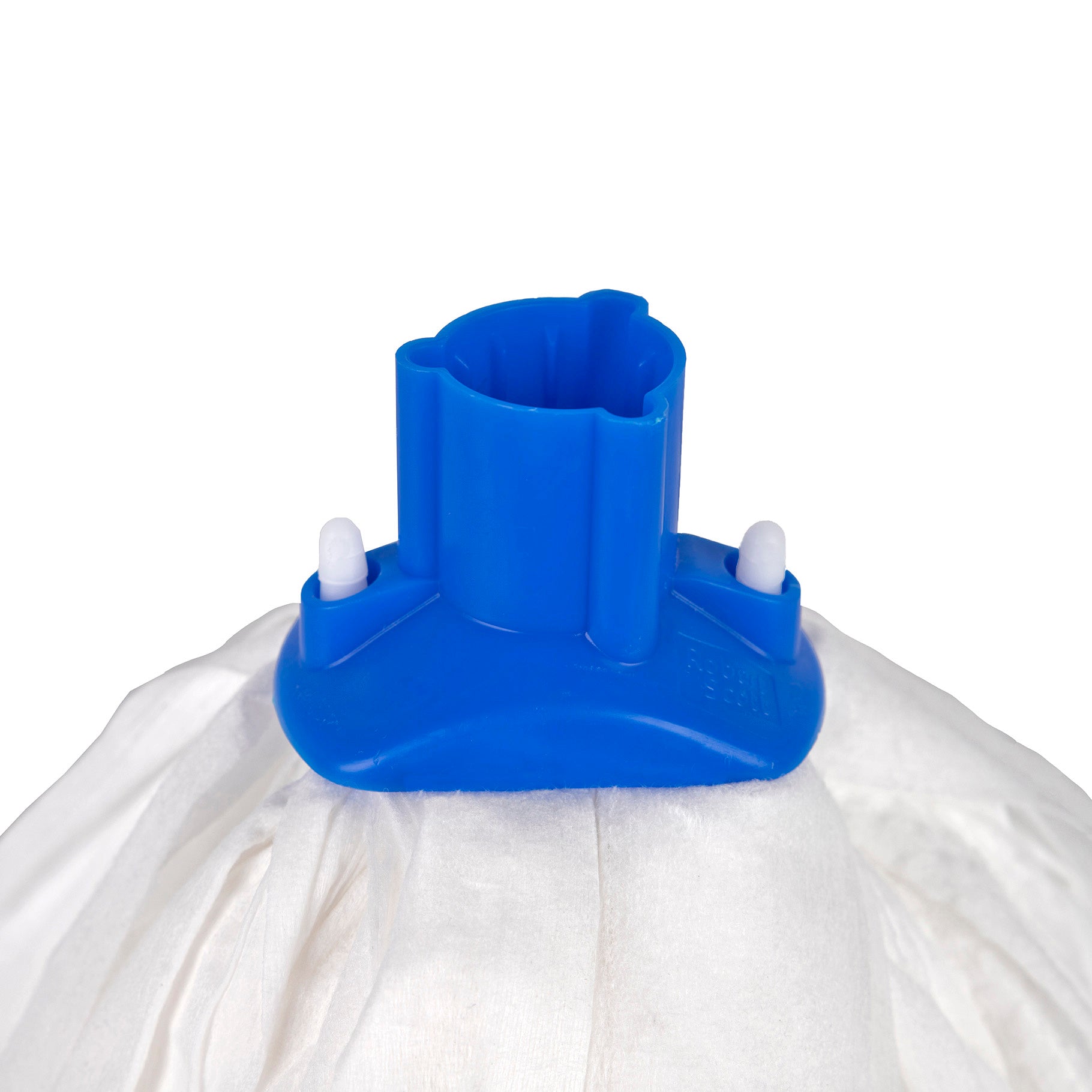 A lightweight, super-absorbent mop made from non-woven waste fabric strips, with extra-secure Exel push-fit fitting to avoid mop slipping on the handle when wringing.