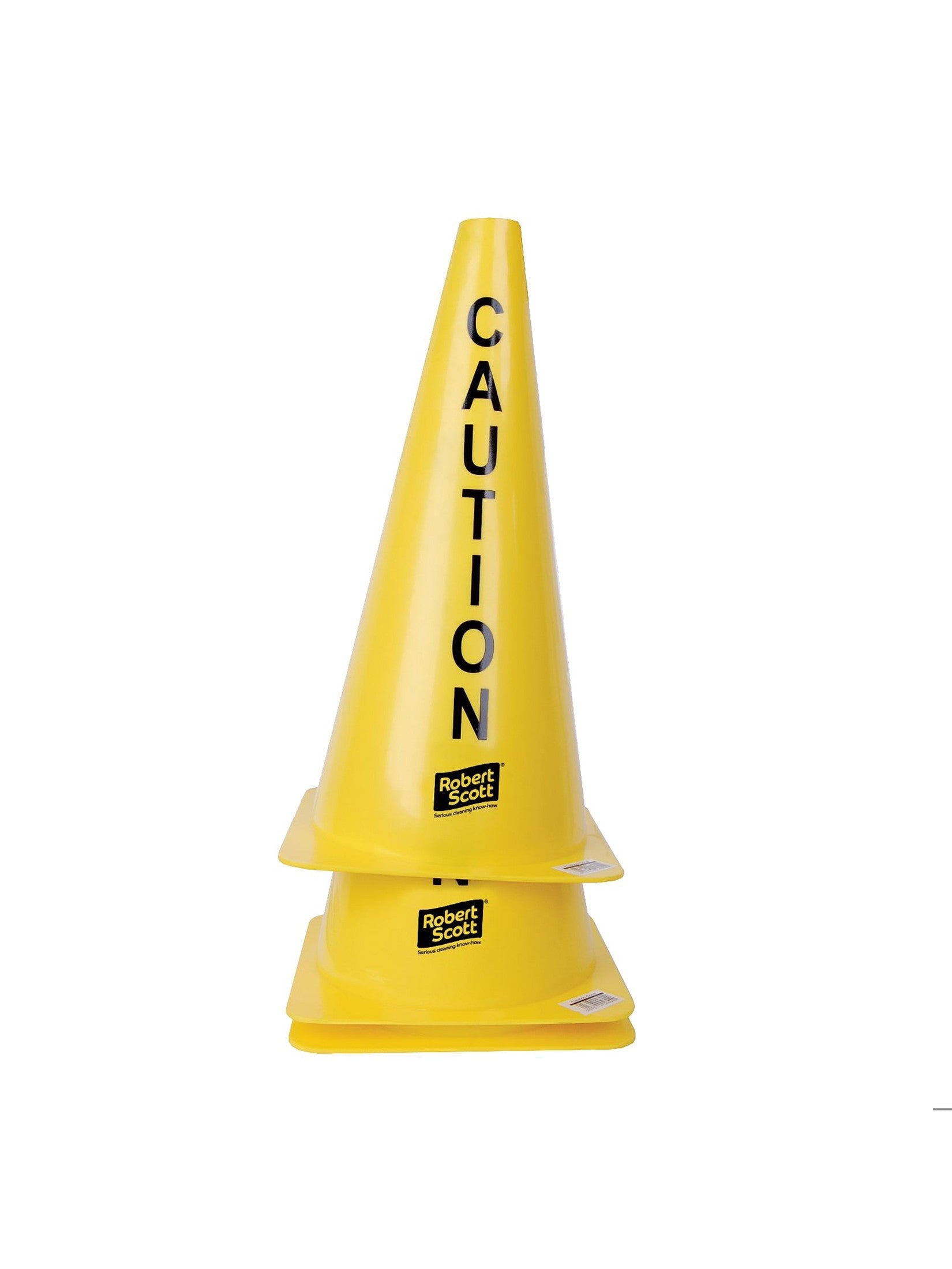 A sturdy bright yellow cone made from tough polypropylene with ‘Caution’ in bold print on both sides to warn against hazards. Stackable for easy storage.