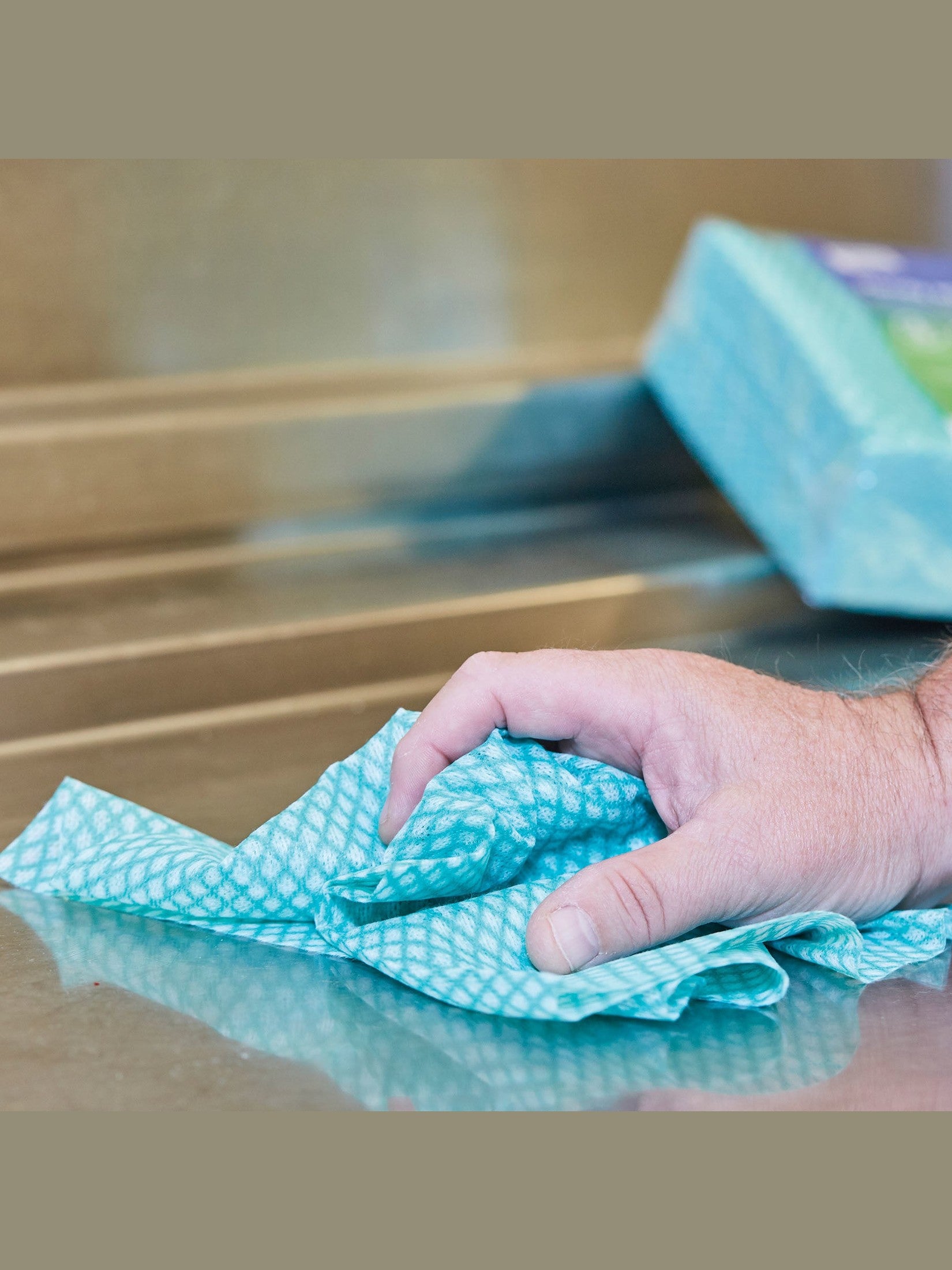 A great value, lightweight and disposable all-purpose cleaning wipe, which is perforated so it provides good absorbency and dirt collection.