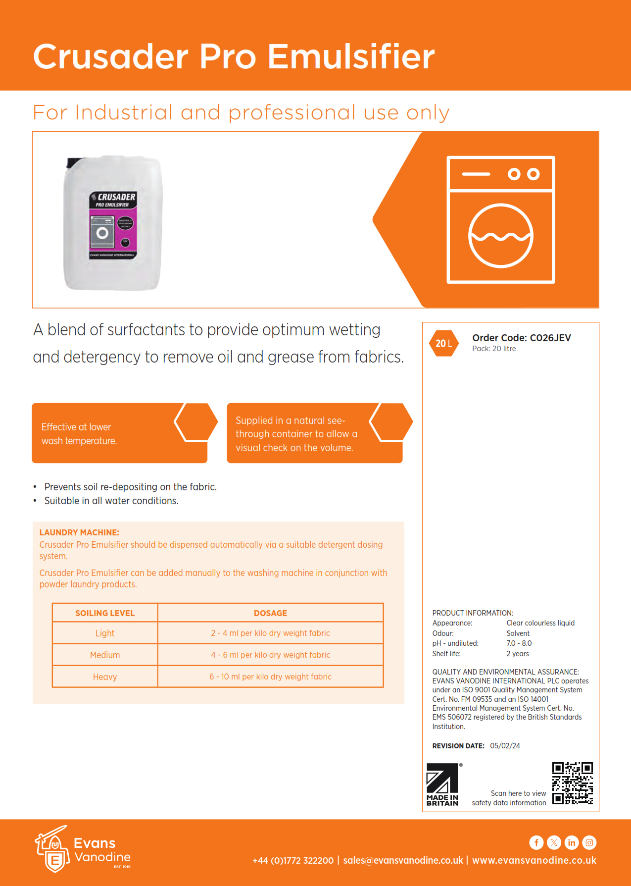 - Suitable as stand alone product for delicate fabrics or heat sensitive classifications