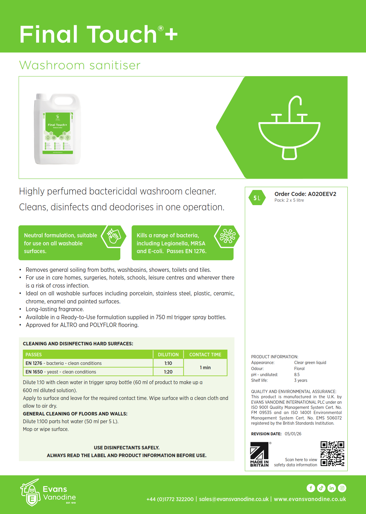 - Kills a range of bacteria, including Legionella, MRSA & E-coli