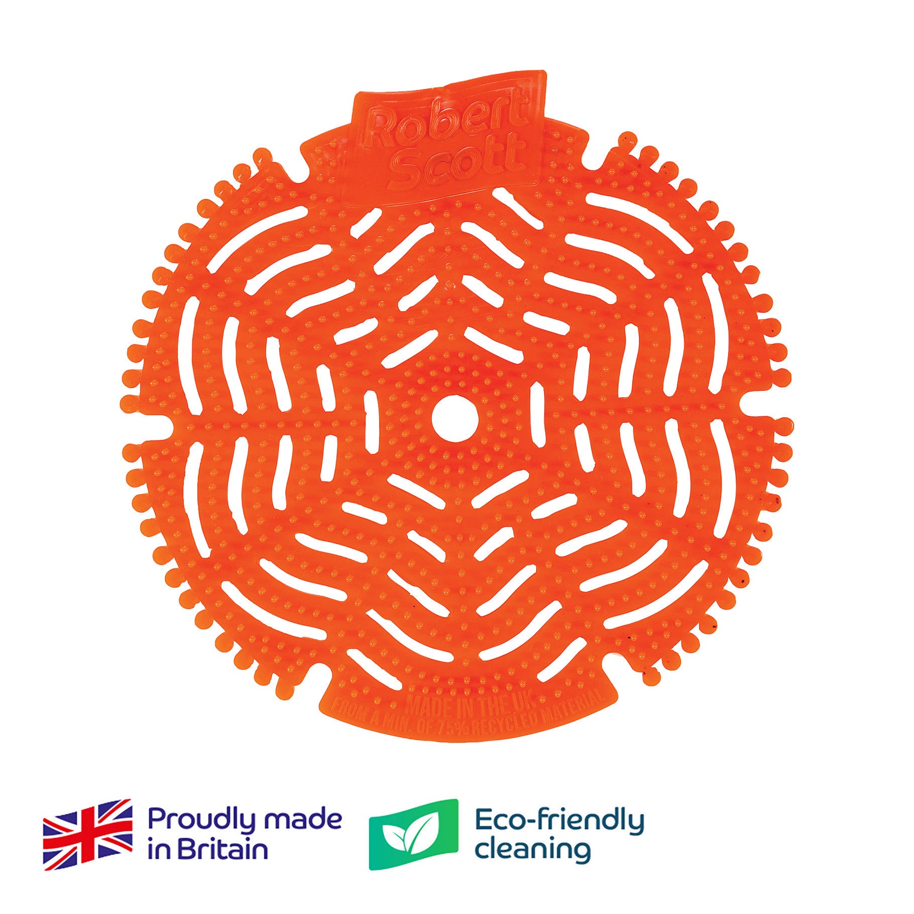 A new anti-splash scented urinal screen that eliminates unpleasant odours for up to 30-days. It is made from an antibacterial material, and it is flexible enough to fit most urinals.