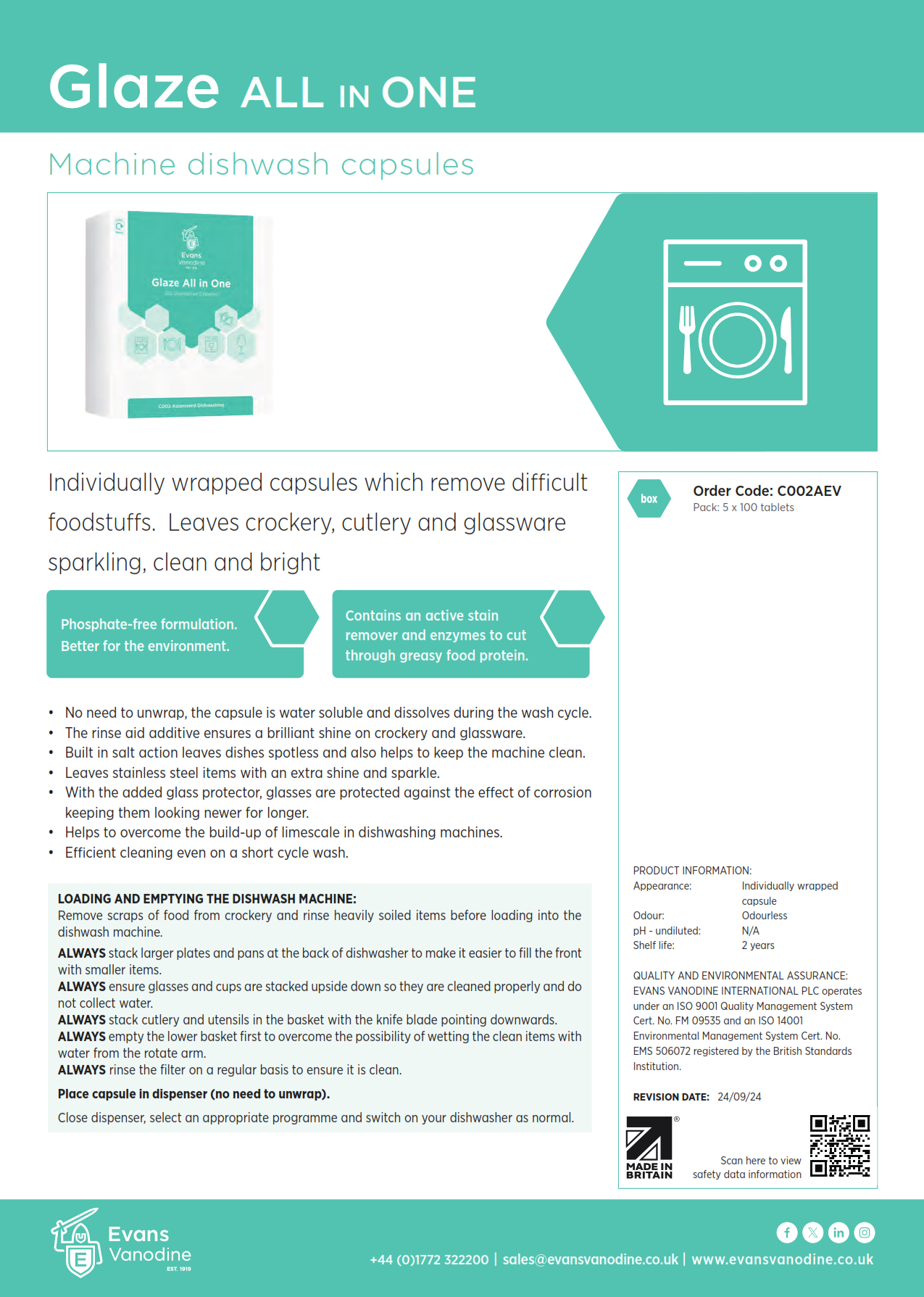 - Removes difficult foodstuffs to ensure crockery, cutlery and glassware are left sparkling