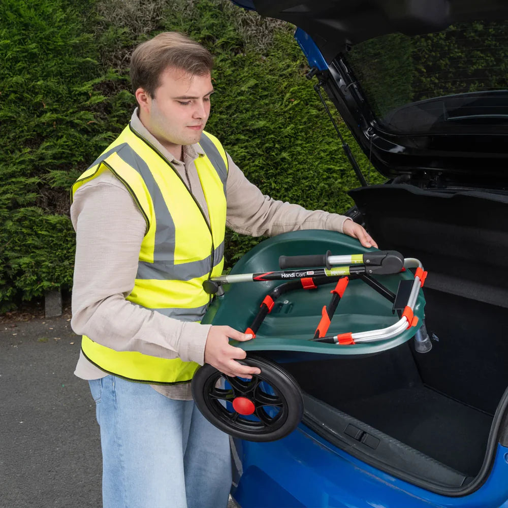 The Handi Cart DUO is the perfect partner for eco-conscious who want to collect and sort litter on the go. Its dual bag opener makes it easy to separate recyclables from general waste, reducing contamination and making every clean-up count. Need to get into a tight spot, like a hedgerow or towpath? Simply detach the dual hoop and carry on - no awkward lifting or dragging required. And when the job's done, the cart folds down compactly to fit easily into a car boot. To keep things clean and tidy between uses, there’s even an optional wipe-clean storage bag too!