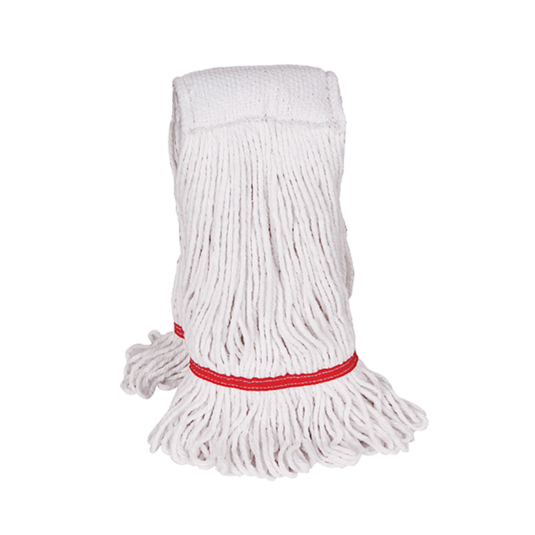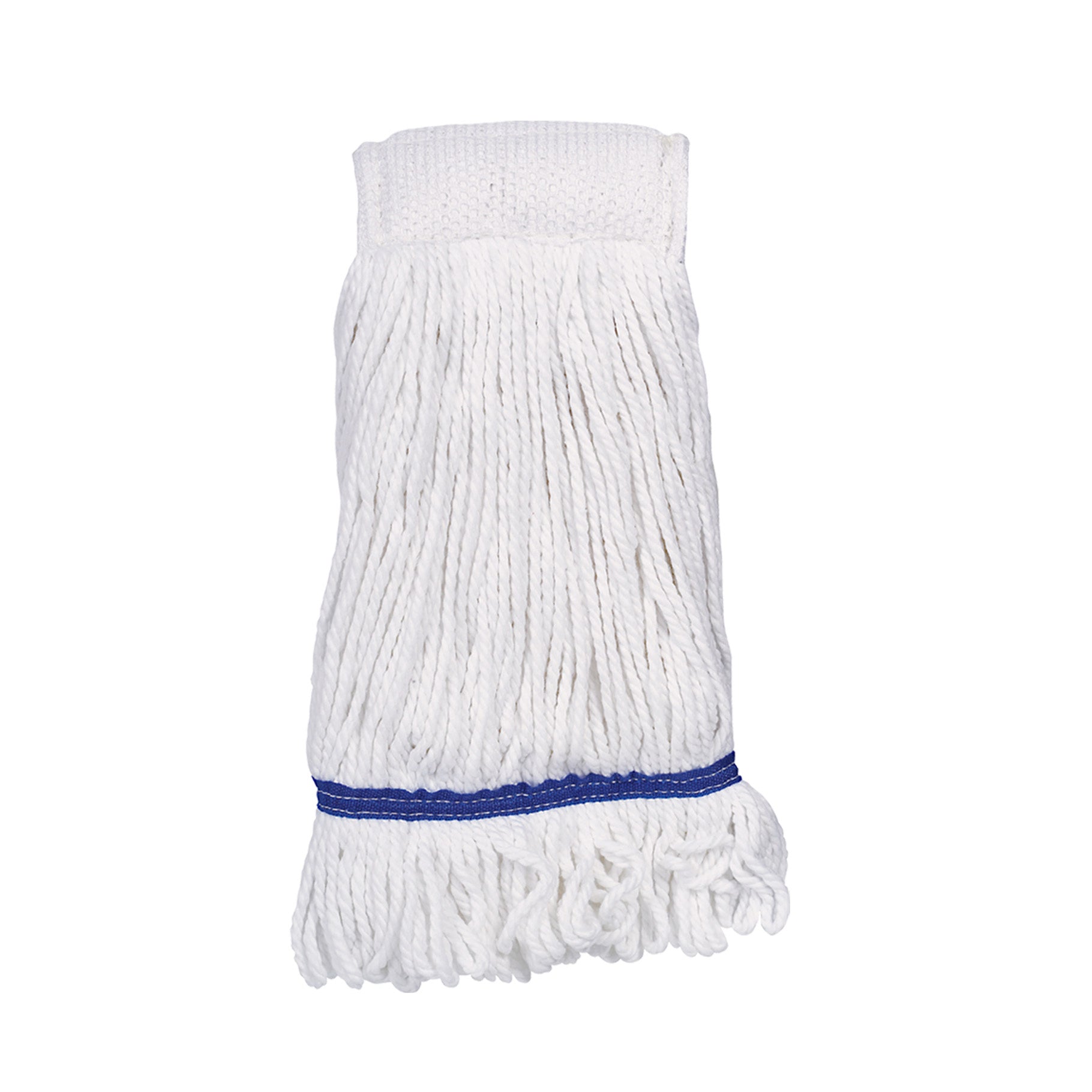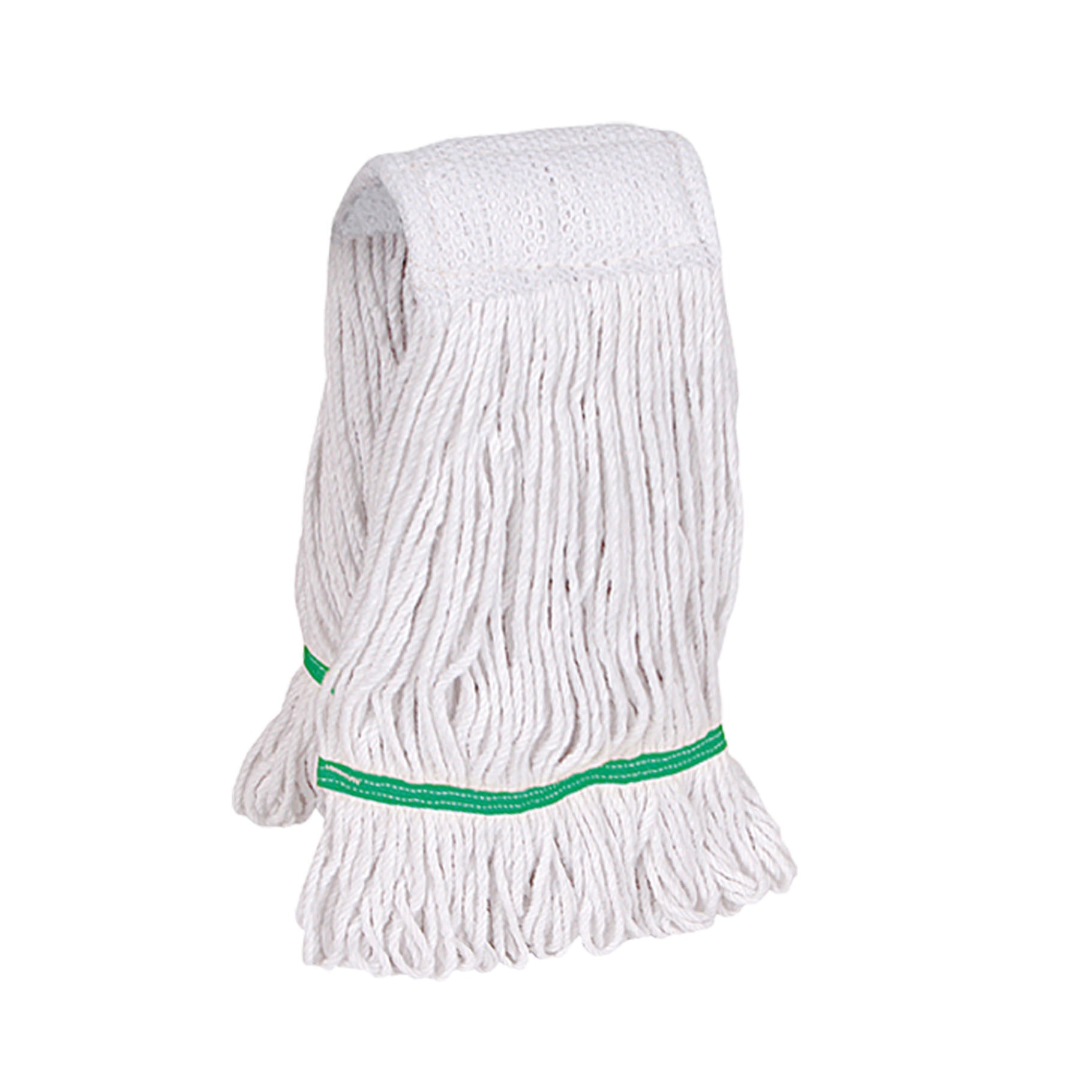 Recycled Hygiemix yarn kentucky mop with an abrasive scratchback centre band for removing dirt whilst mopping. The stayflat band keeps the yarn flat on the floor, enabling the mop to cover a larger floor area, whilst the looped end yarn reduces linting and avoids the yarn tangling in use.