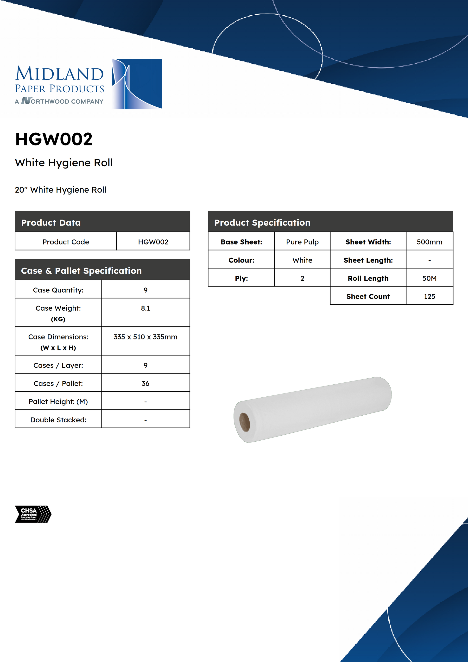 Hygiene Roll White 2 ply 500mm x 50 Meter x 9 Rolls