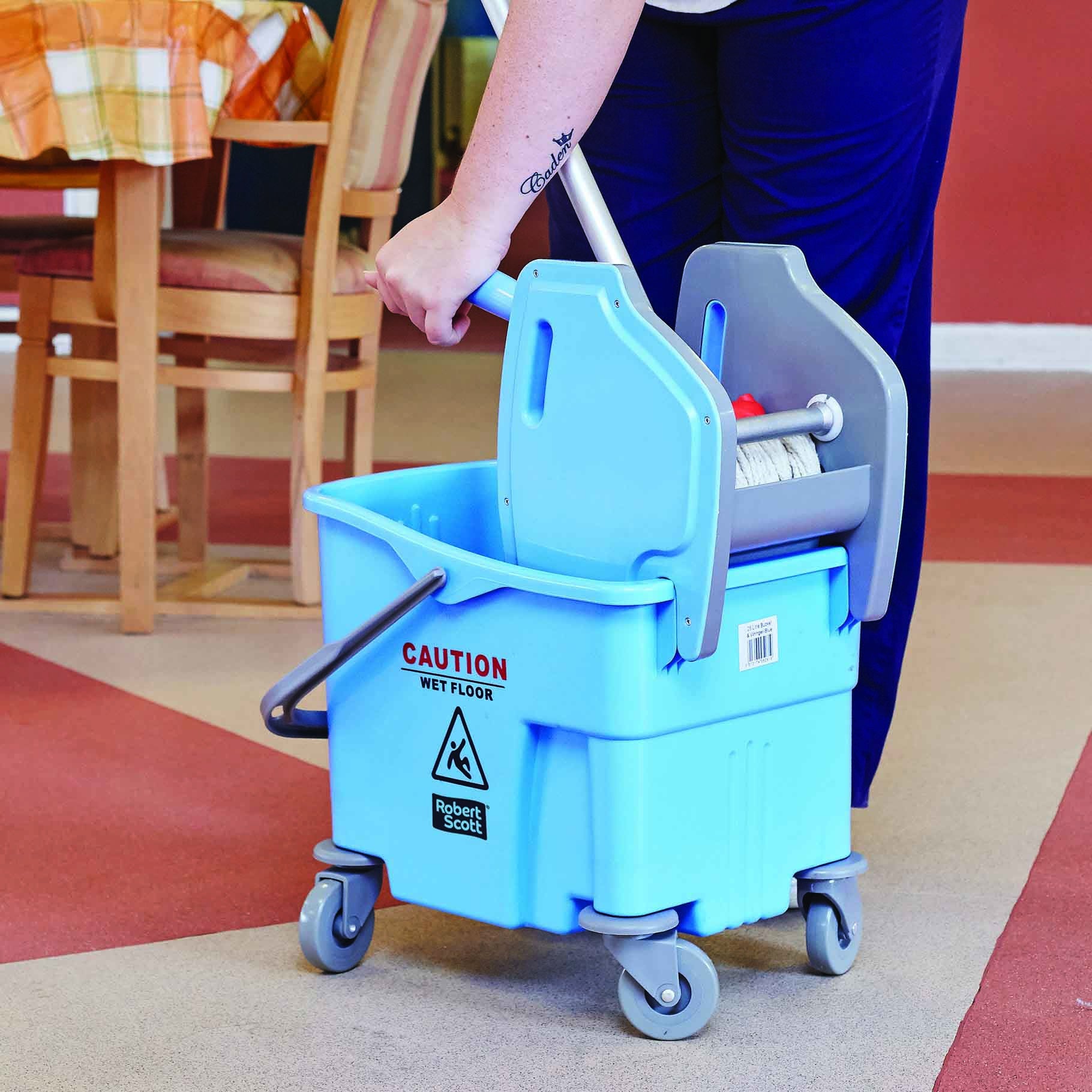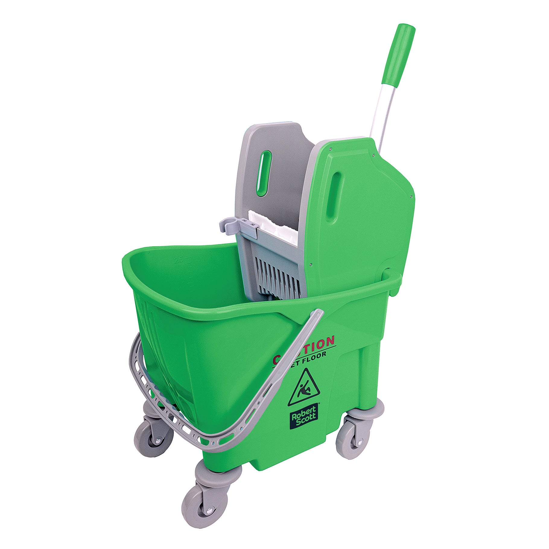 Made from hardwearing polypropylene with dirt retaining sump and unique curved shape to avoid spillage. Sturdy, effective handle-operated wringer suitable for use with Kentucky mops 300-450g. Available in four colours.