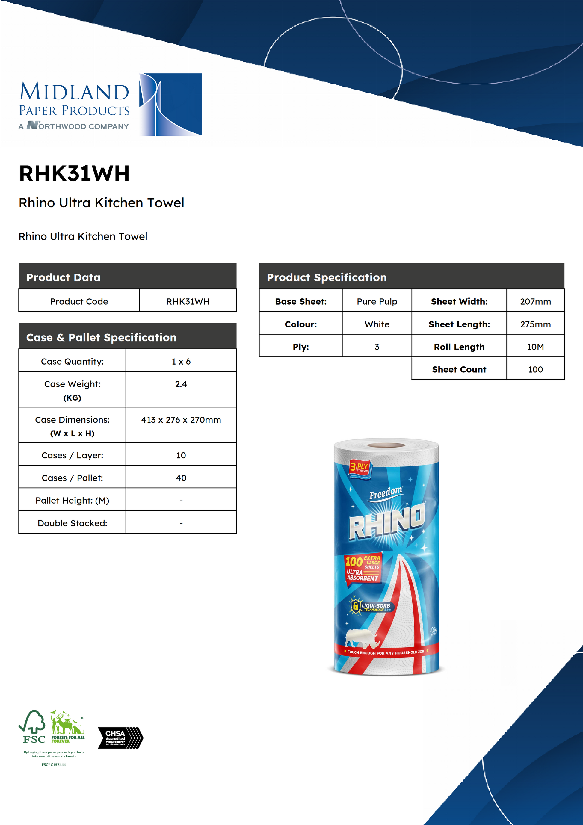 Kitchen Towel 3 ply x 6 Rolls