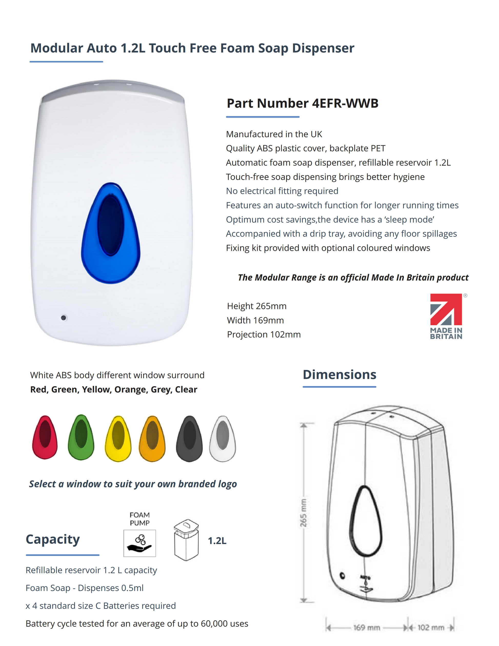 Modular Auto 1L Touch Free Refillable Soap Dispenser