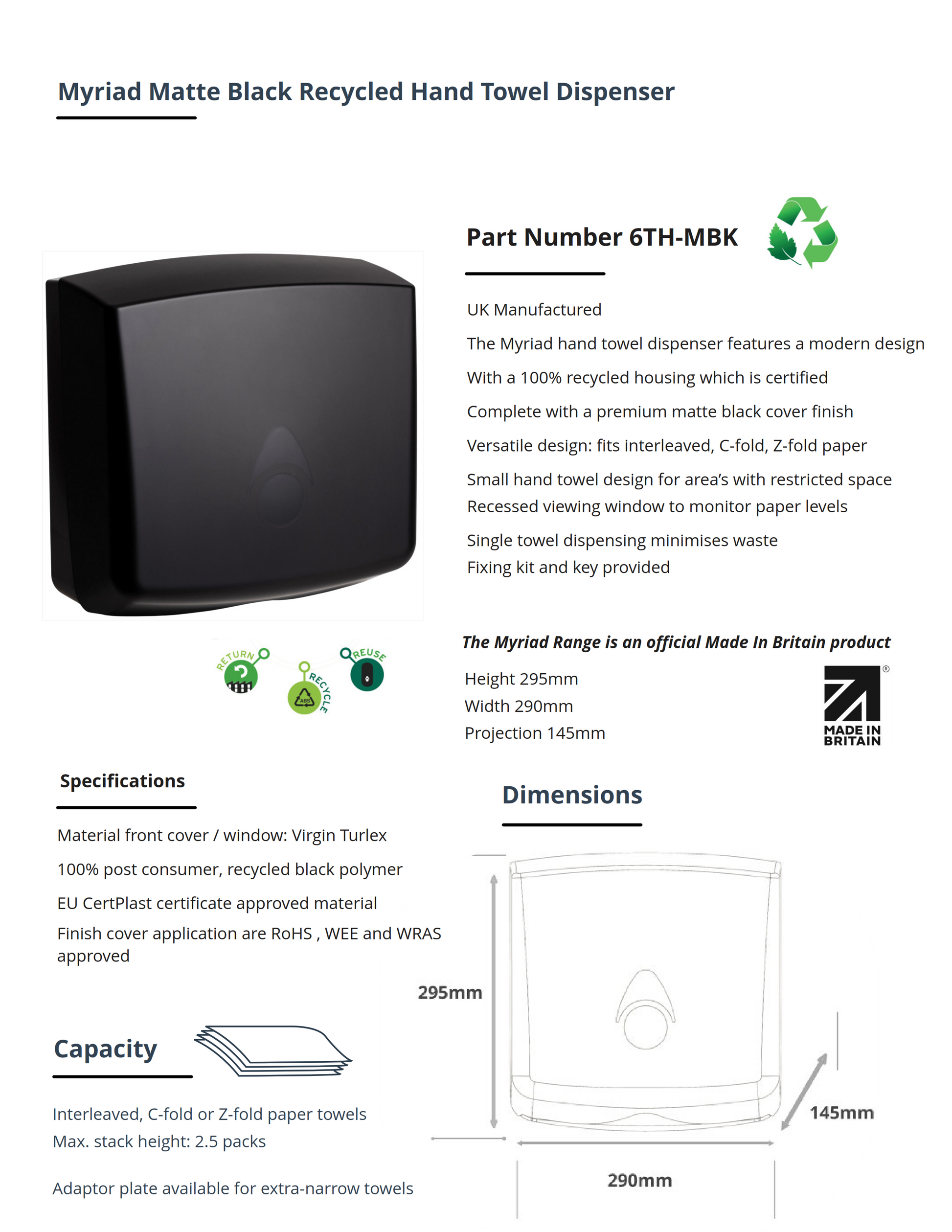 Myriad Matte Black Recycled Hand Towel Dispenser