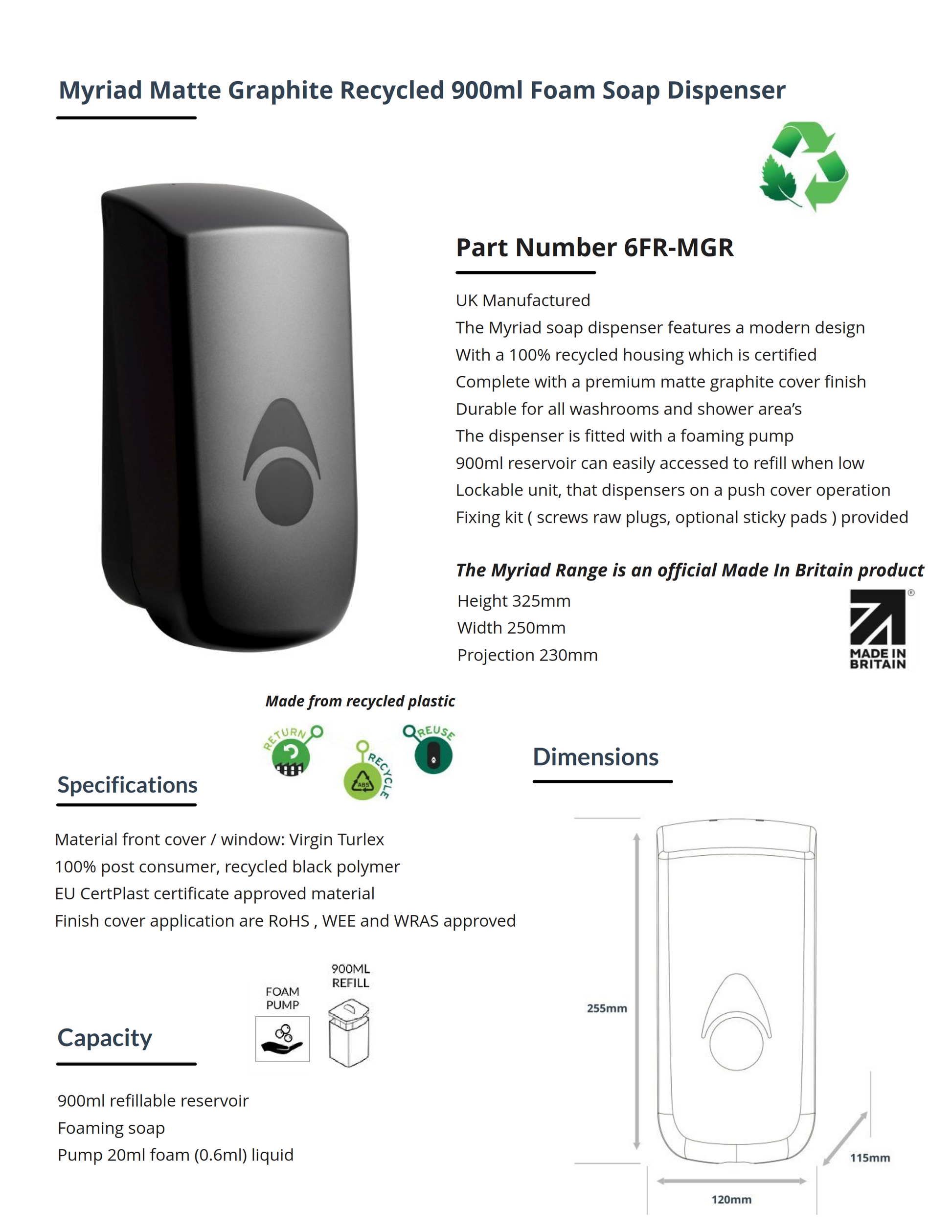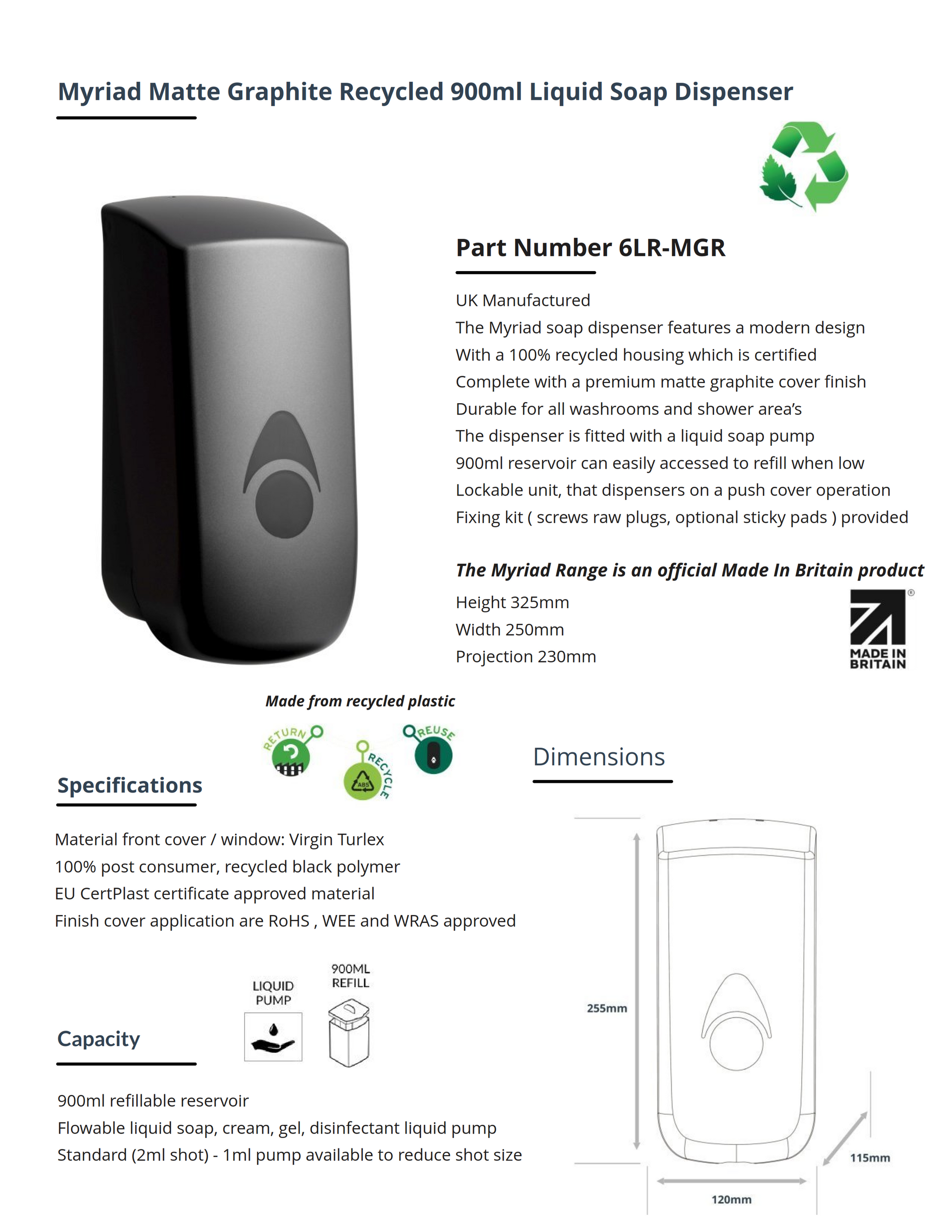 Myriad Matte Graphite Recycled 900ml Soap Dispenser