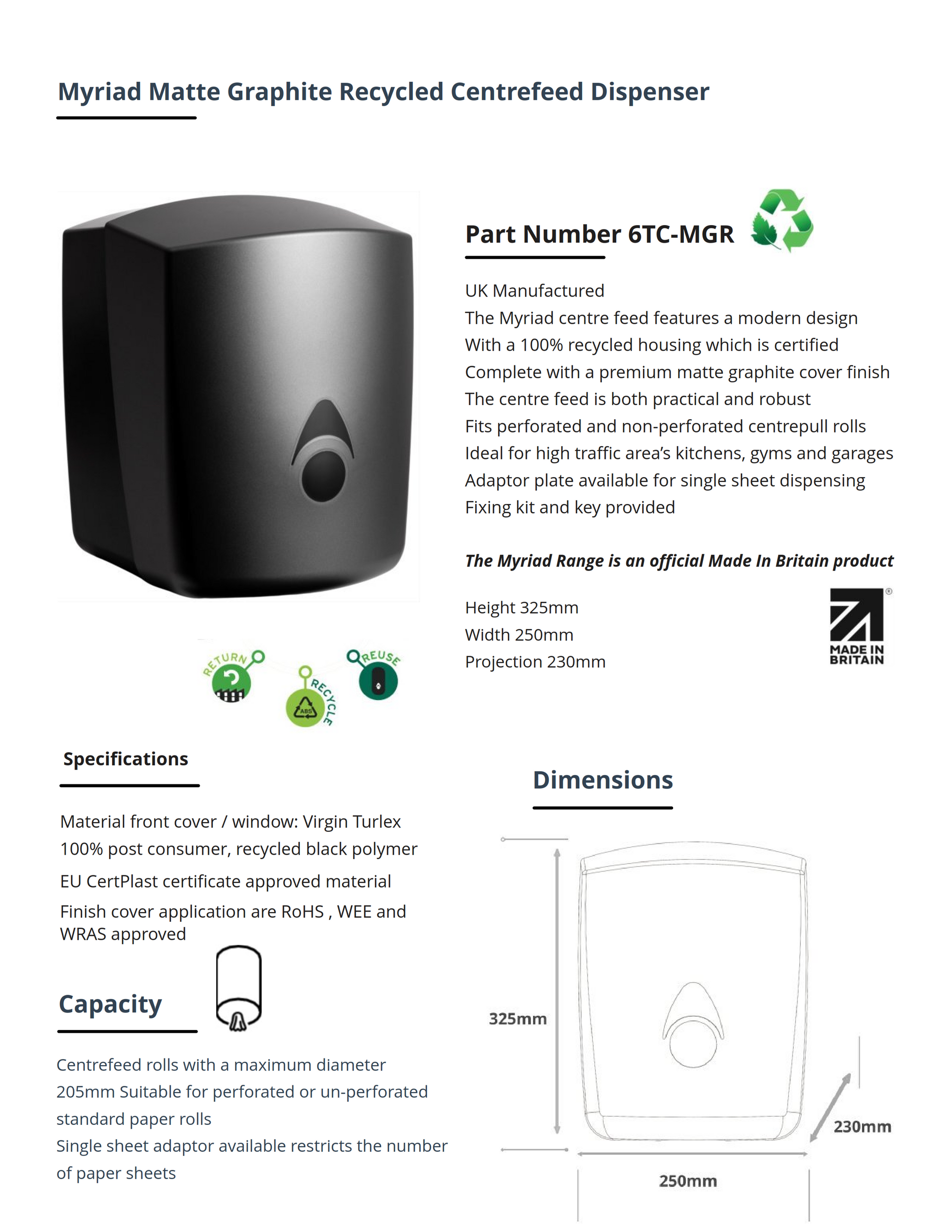 Myriad Matte Graphite Recycled Centrefeed Dispenser