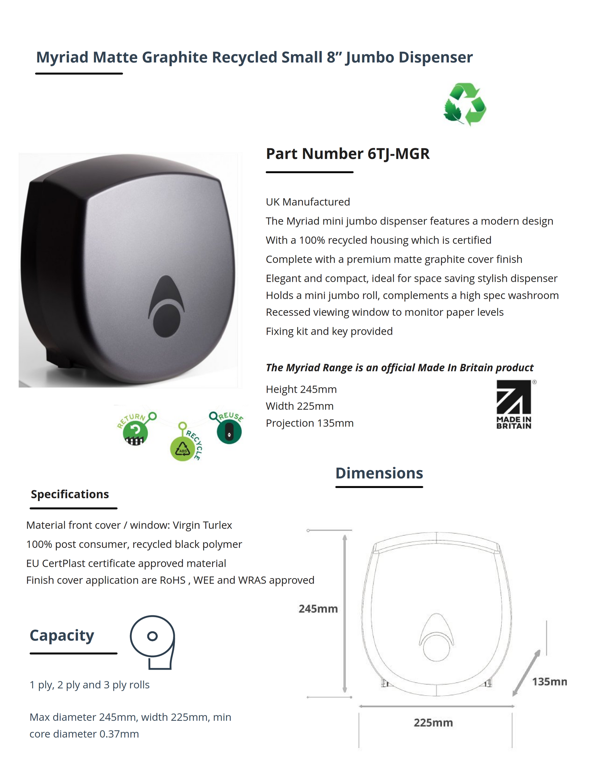 Myriad Matte Graphite Recycled Small 8” Jumbo Dispenser