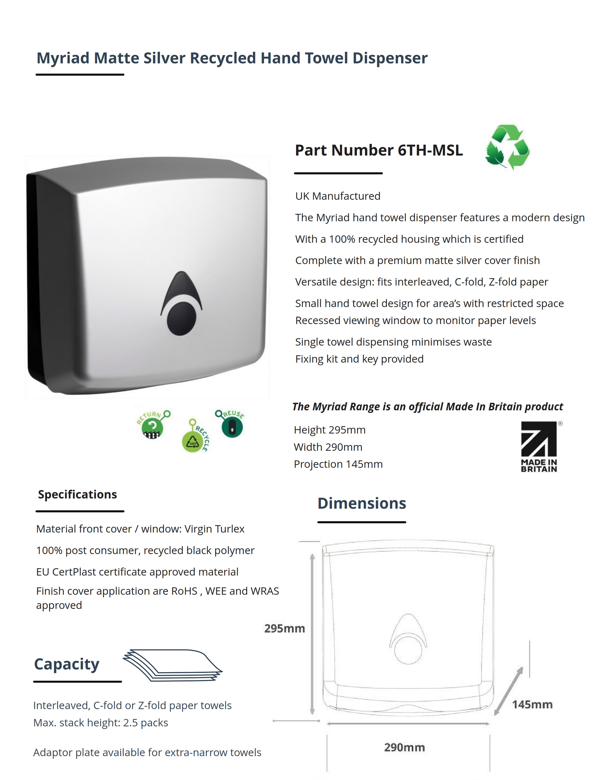 Myriad Matte Silver Recycled Hand Towel Dispenser
