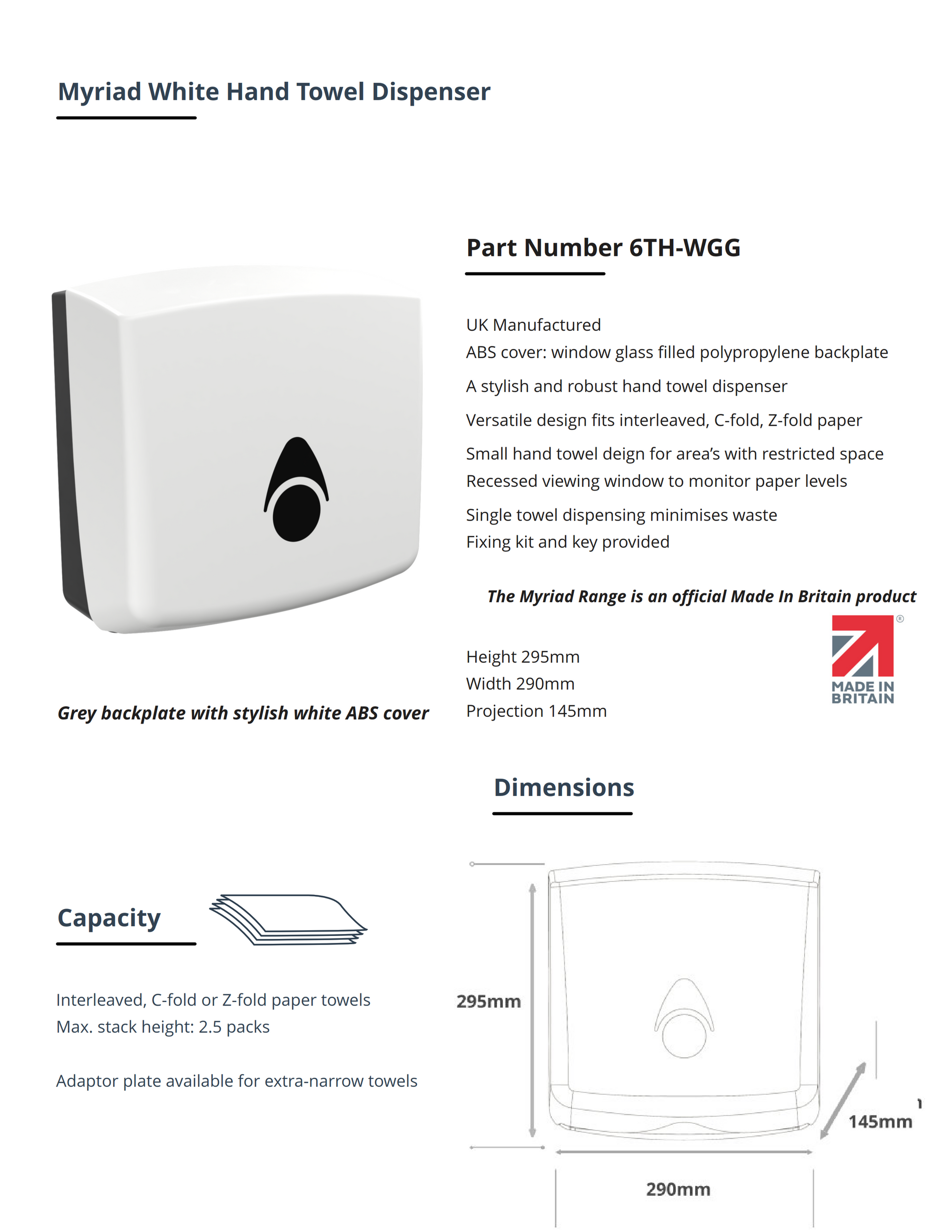 Myriad White Hand Towel Dispenser