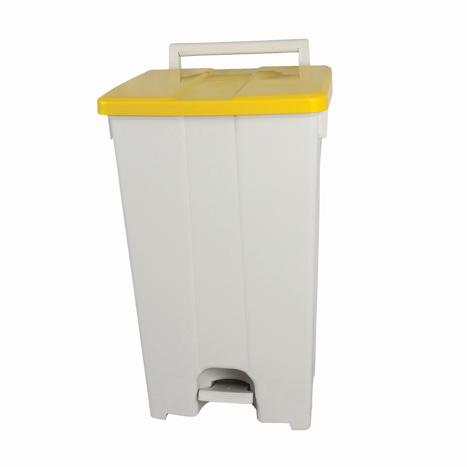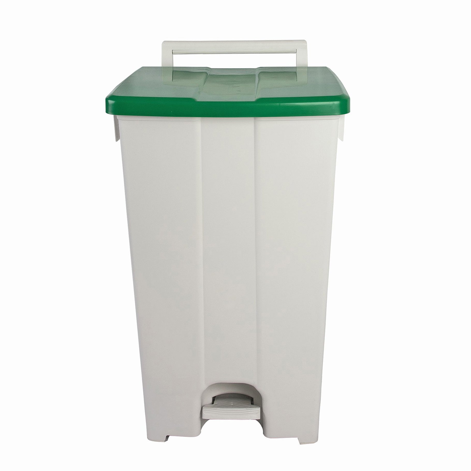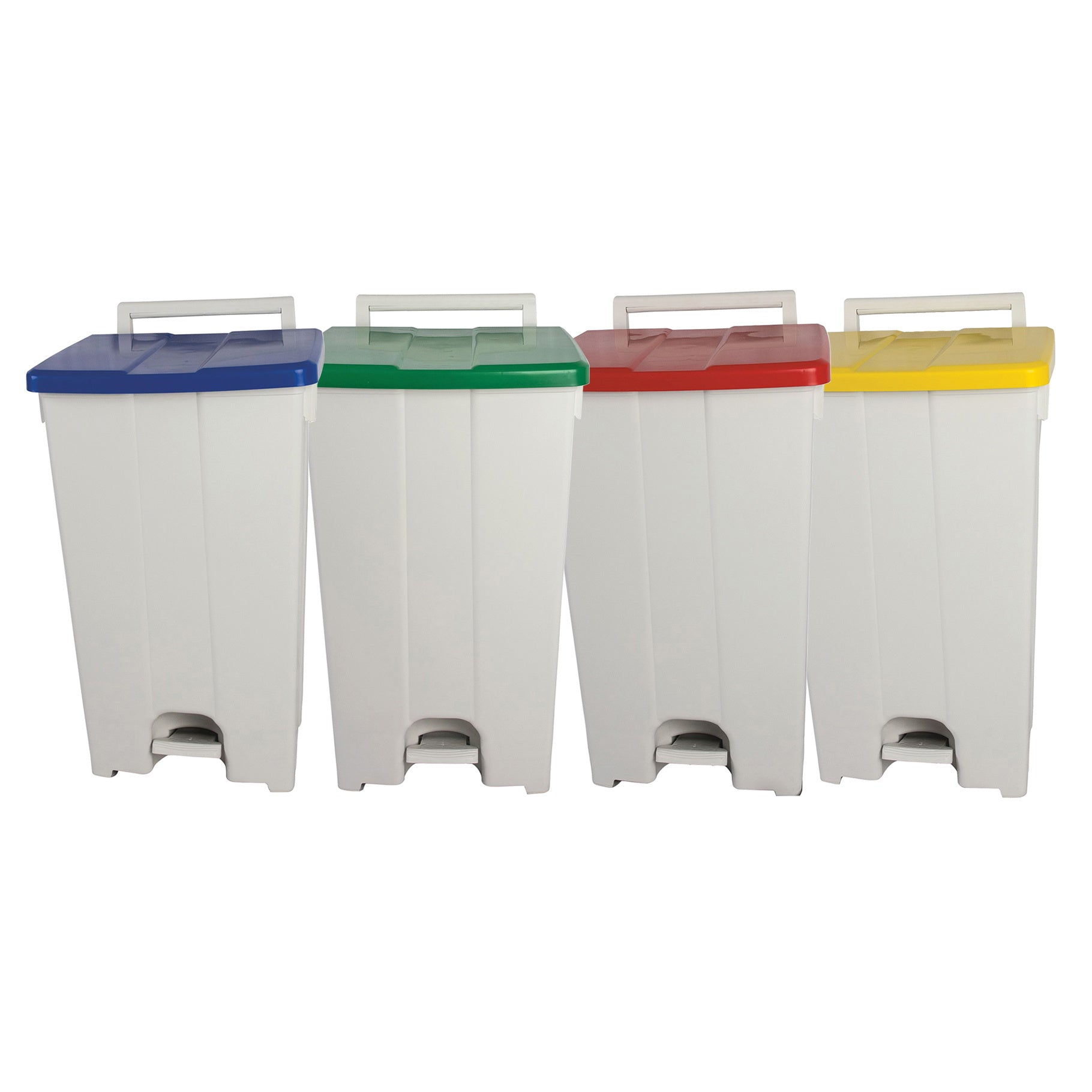 A large, durable and hygienic polypropylene pedal bin featuring a colour coded lid for waste segregation. Has an air freshener holder inside and 2 hooks to secure bin bags. Two rear wheels and large handle for easy maneuverability.