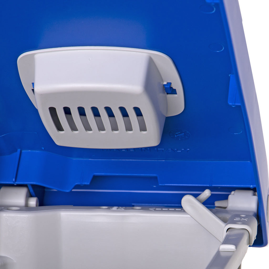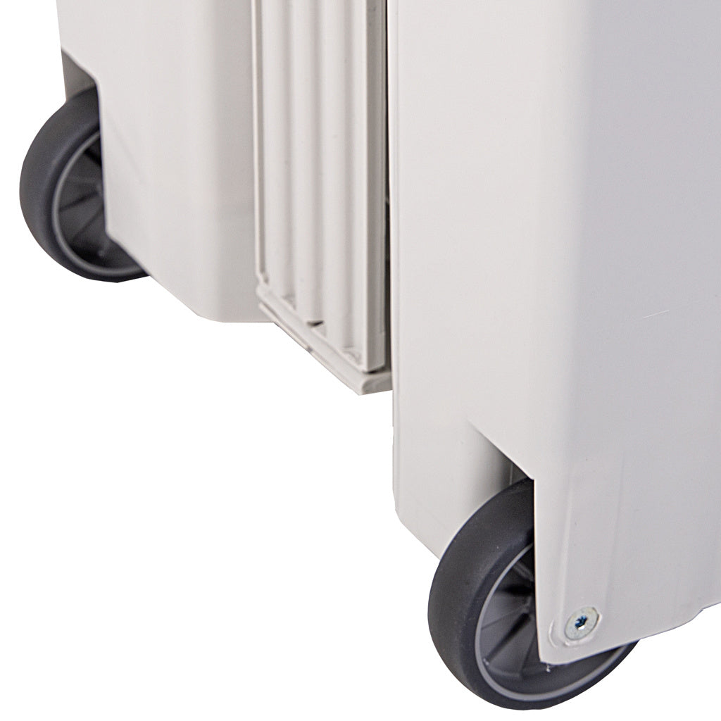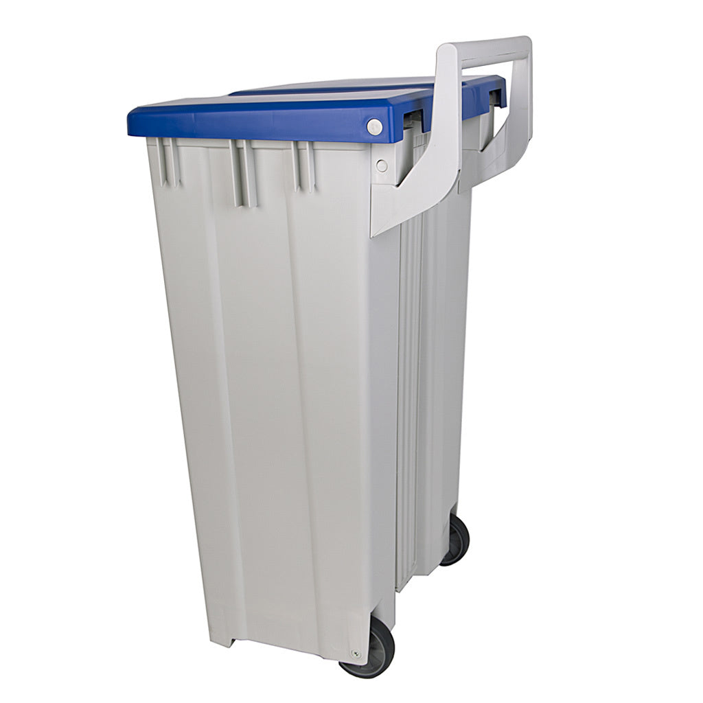 A large, durable and hygienic polypropylene pedal bin featuring a colour coded lid for waste segregation. Has an air freshener holder inside and 2 hooks to secure bin bags. Two rear wheels and large handle for easy maneuverability.