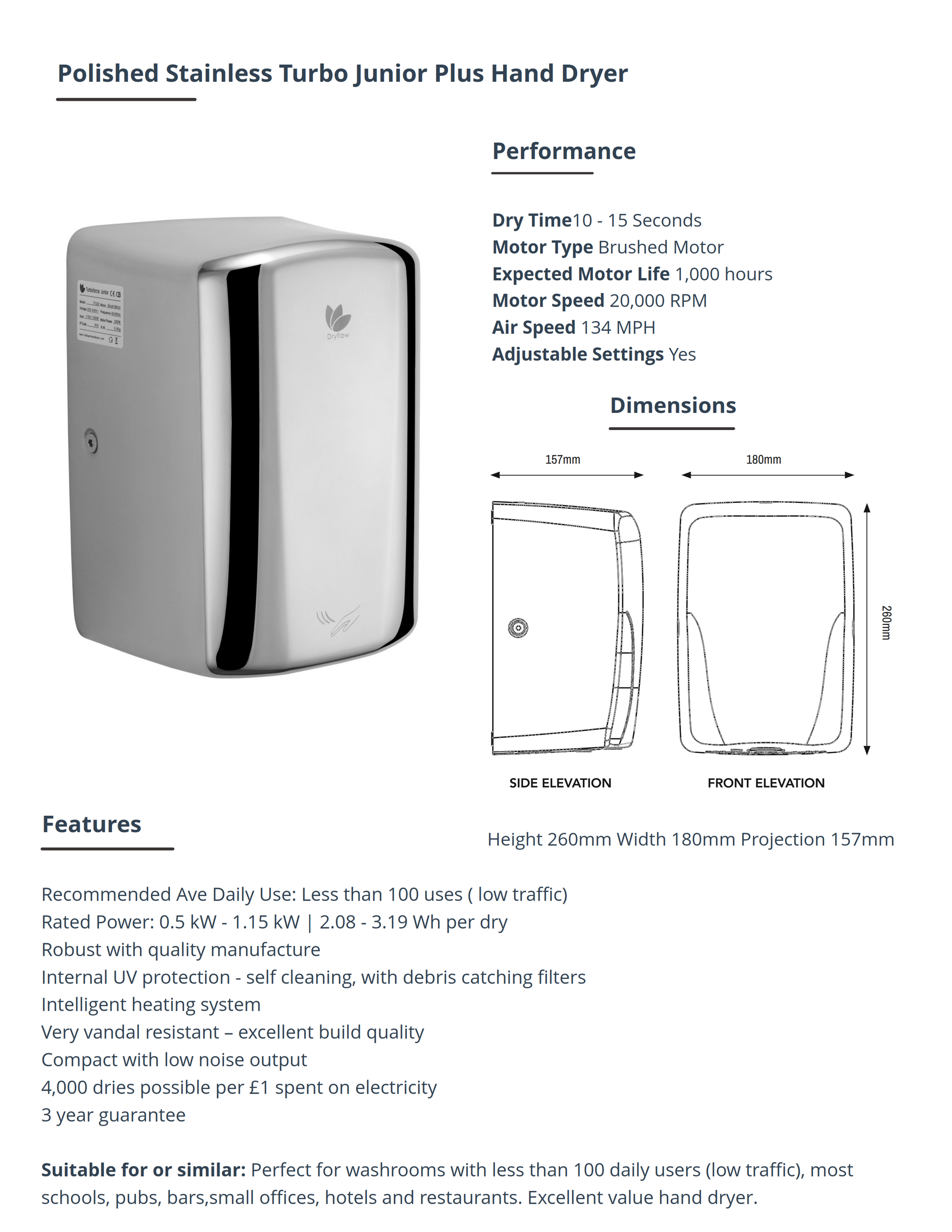 Polished Stainless Turbo Junior Plus Hand Dryer