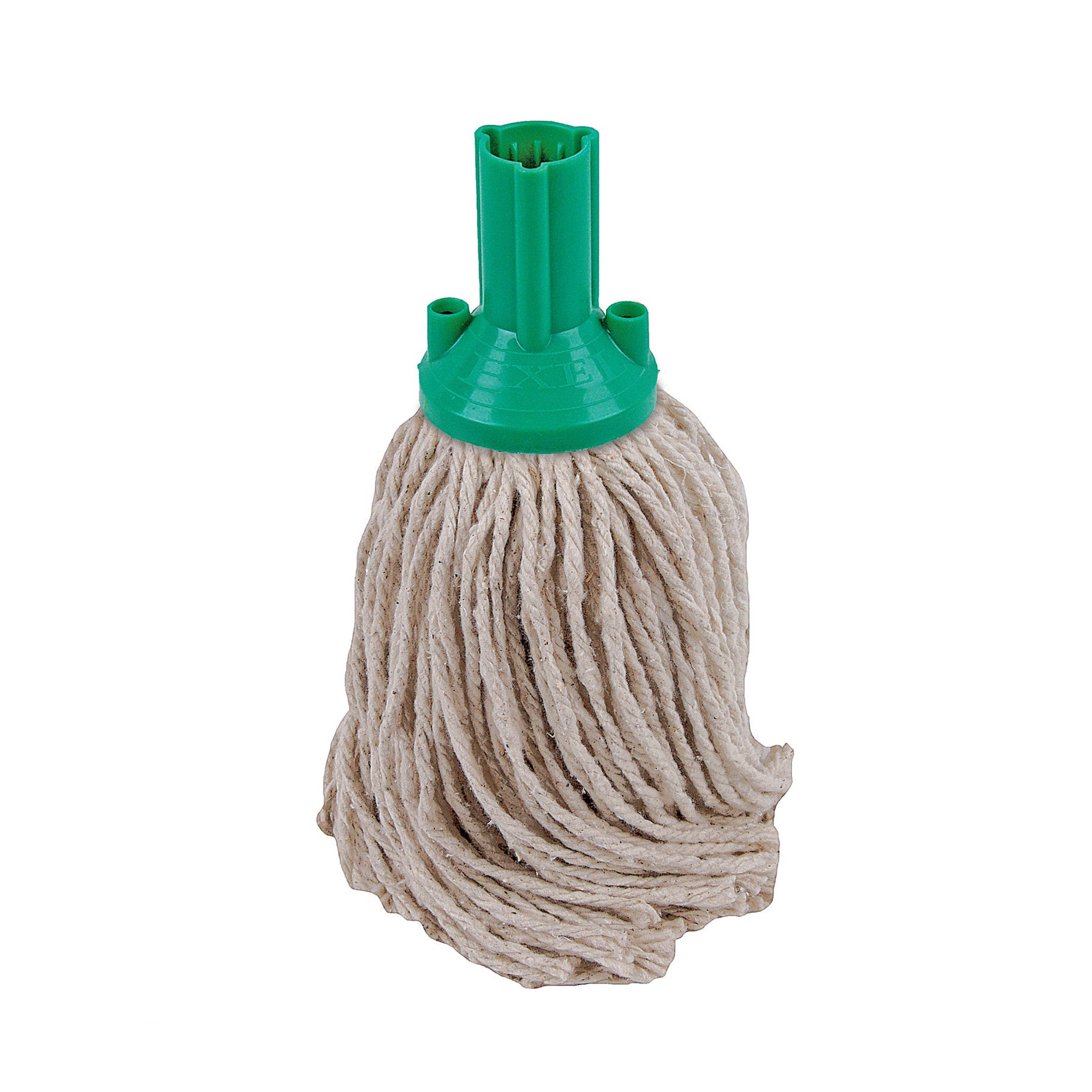 A traditional yarn mop with our Exel push fitting, designed to avoid the mop slipping on the handle whilst wringing. Absorbent recycled PY yarn is suitable for smoother floor surfaces like laminate or lino flooring. Available in various weights and colour coded sockets. Made in UK.