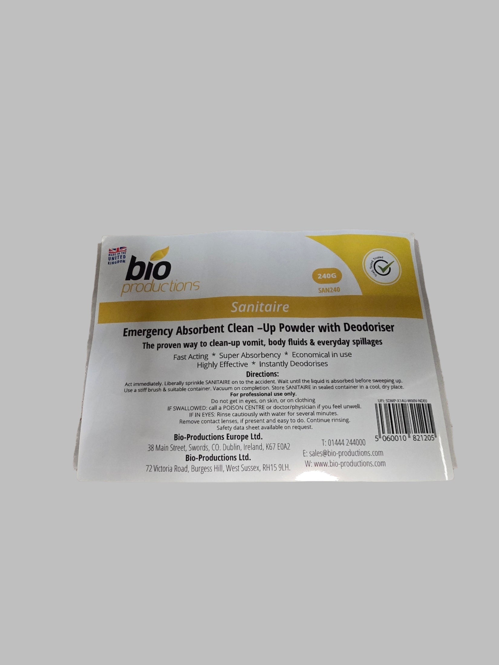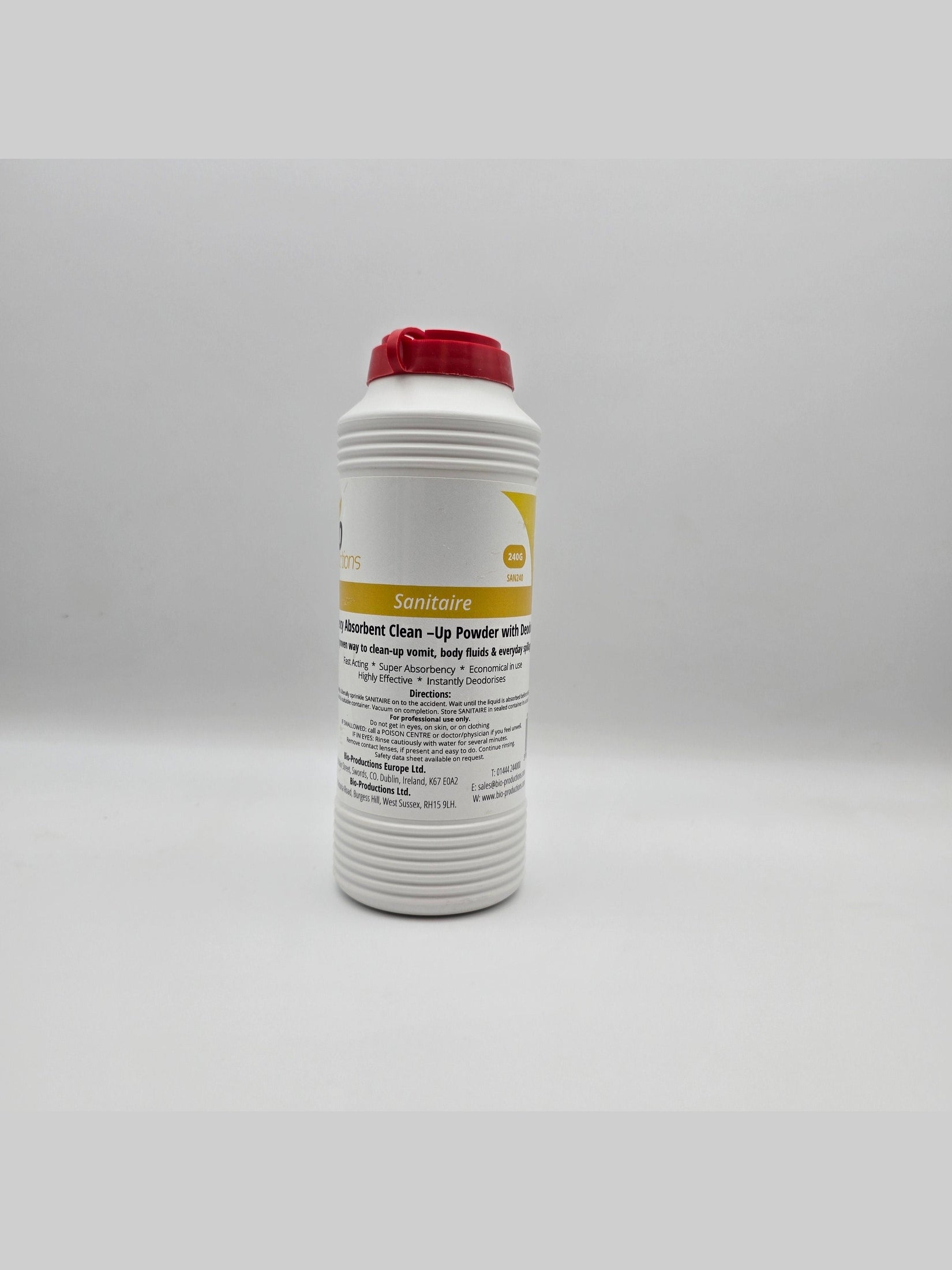 Economical to use, Sanitaire is an effective emergency treatment for all accidental spillage’s including; vomit, urine, blood and faeces as well as for cleaning-up food and drink spillages.