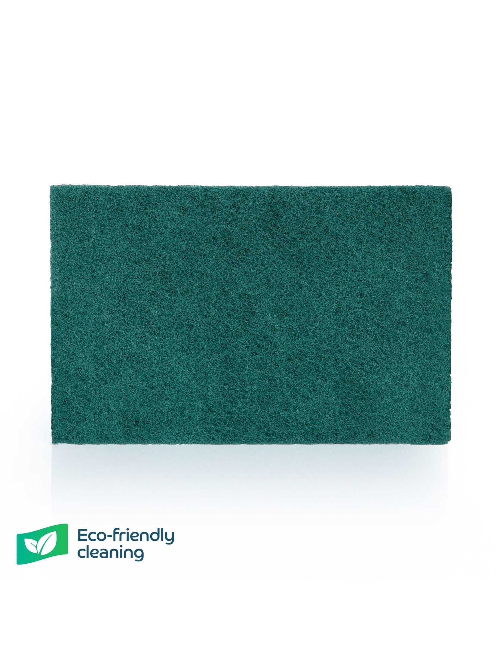 A standard weight scouring pad designed to easily remove tougher dirt. Suitable for use in catering and general cleaning. The green scourer is now made from 100% recycled material.