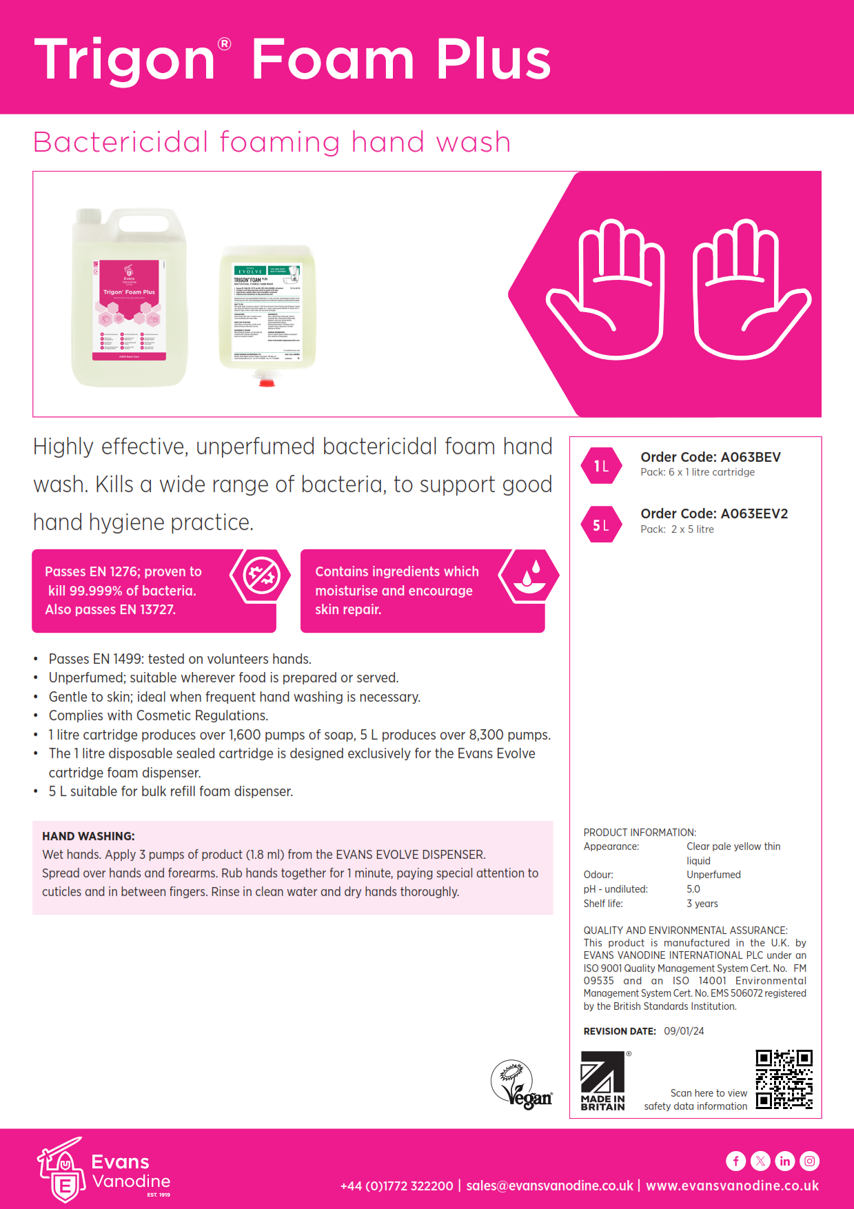 - Passes EN 1499, EN 13727 & EN 1276; kills 99.999% of bacteria