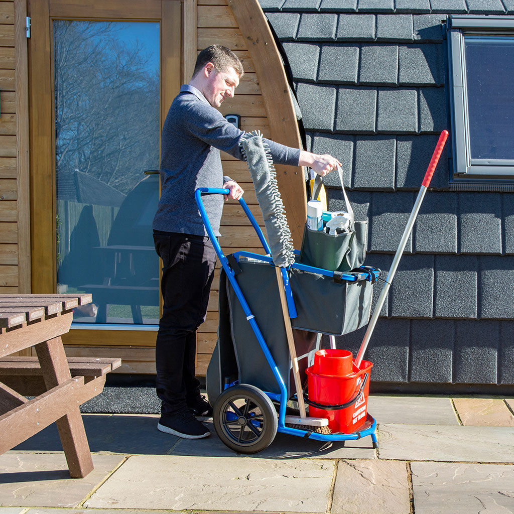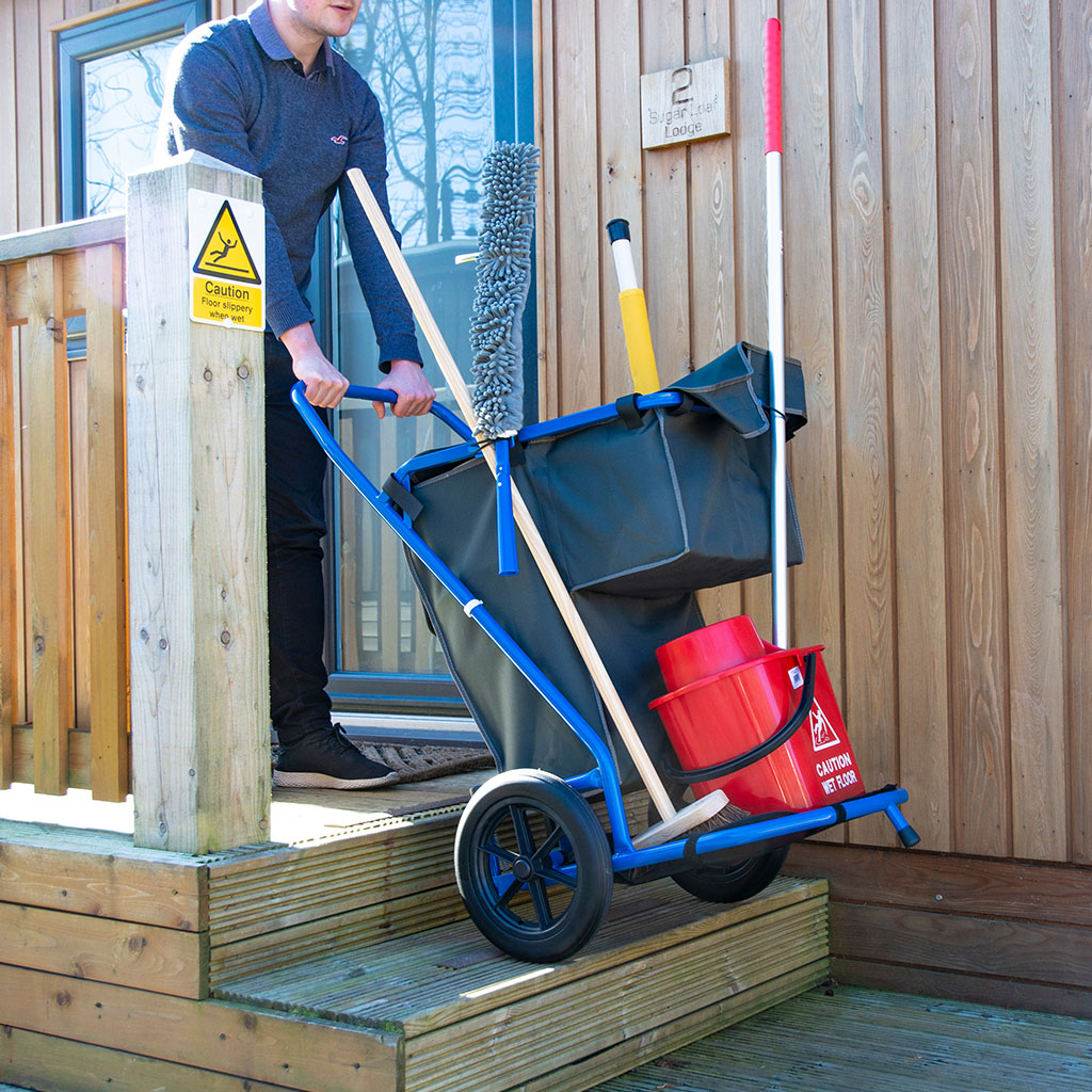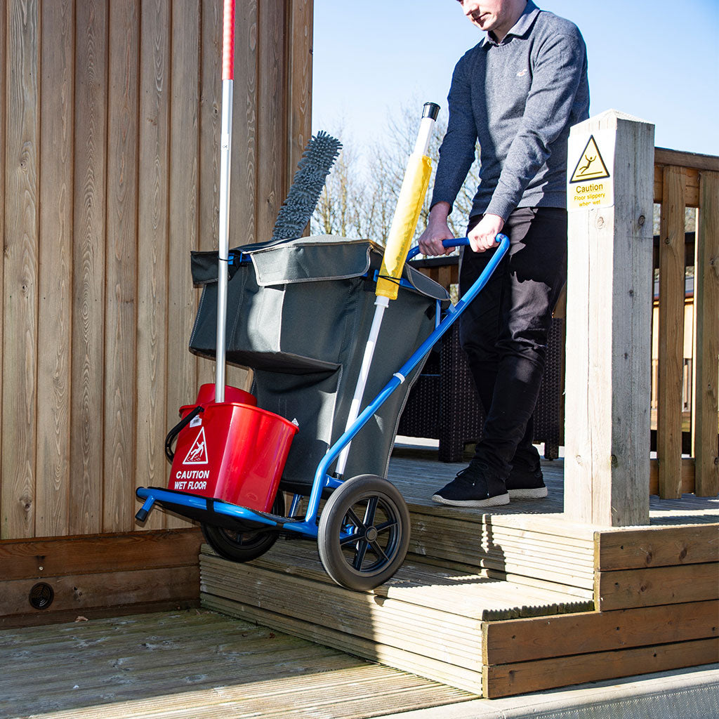 It is ideal for holiday parks, caravan parks and camping sites where there are several accommodations over a large area. Perfect for when cleaning staff need to move their equipment outdoors between lodgings over all types of terrain such as grass, gravel and paving stones.